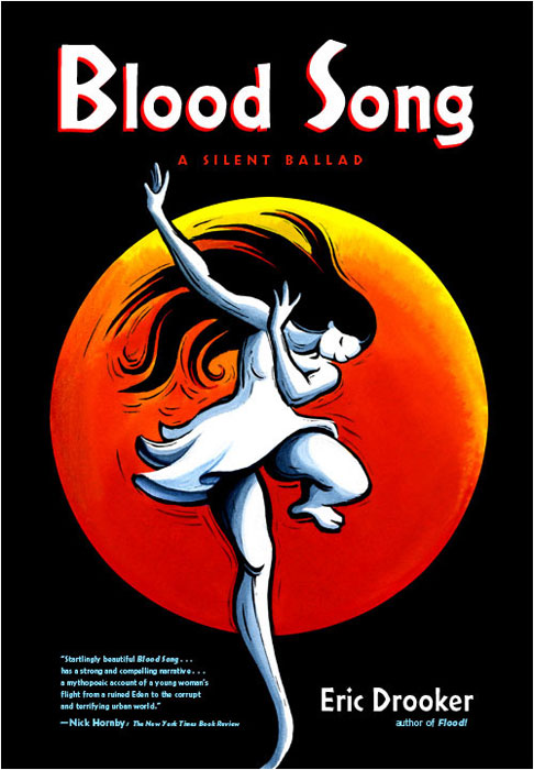 Drooker varies panel size and makes frequent use of double page spreads to communicate the intense, inner reality his book expresses. Its extreme angles and bold, dense images are reminiscent of 1920s and 30s Expressionism and that era’s renderings of “primitive” tribal art. Frequently viewing the skeletal interiors and hearts of Drooker’s characters, we know that Flood! is meant as metaphor, not reality. But the pounding, pulsating intensity and rhythms of this graphic novel make it feel real. In 1994, this work was deservedly honored by other writers with an American Book Award.