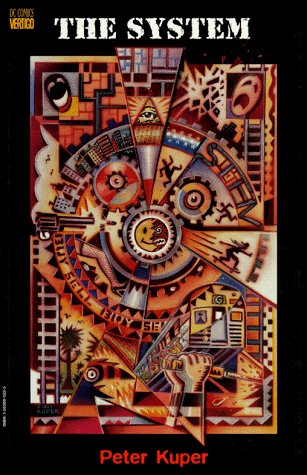 Fragments of newspaper stories, picket signs, a missing person flyer, and a final, ironic sound effect “word balloon” are the other, infrequent verbal cues that sharpen and refine The System’s satisfyingly complex narrative. Kuper also uses three literary epigraphs, each mentioning a “system” or “systems,” that drive home his point. Even without these cues, though, Kuper’s images are strong and clear enough to communicate the novel’s gist.
