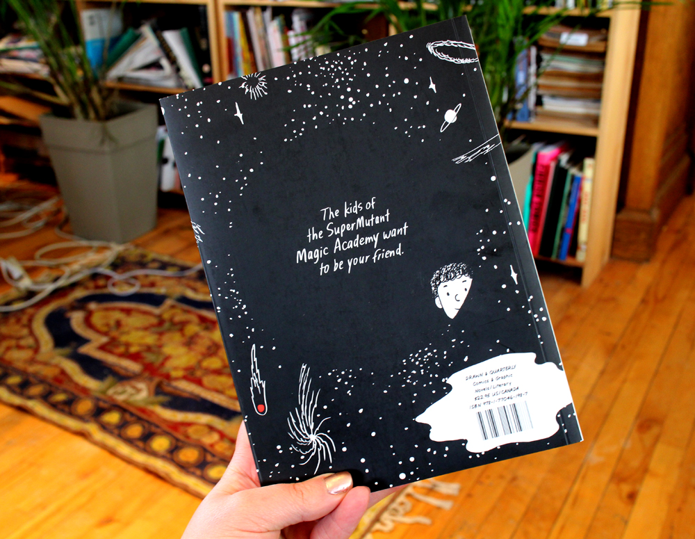 Yet friendship, however bittersweet, survives and triumphs. Wendy does not recognize or later return Marsha’s romantic feelings, a situation Marsha ruefully accepts. Still, after Marsha’s phantasmagoric prom night adventure involving Cheddar and a deadly prophecy, and Wendy’s simultaneously dancing to strobe-lighted music and partaking in some highly-illegal underage drinking, the pair fall asleep alongside each other. Just before the snores begin, each tired or tipsy girl manages a sincere, sleepy “I love you” for the other. As Jillian Tamaki has shown us throughout Supermutant Magic Academy, even cool (mutant) kids have hearts. And—if enough care is taken and respect given—those hearts need not be broken. Perhaps the book’s back cover text best sums up this insight and the feeling the entire book leaves behind: “The kids of the SuperMutant Magic Academy want to be your friend.”