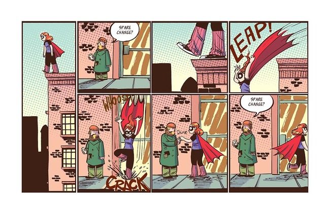 Some graphic pieces also appear in installments at Hosler’s science comics blog, “Drawing Flies.” The science there is sometimes high school level or above, but readers of all ages will take pleasure and learn from the blog’s multipart “Field Guide to Superpowers.” It compares comic book superheroes old and new with natural creatures—including beetles, spiders, and ants—which actually have each hero’s “superpowers,” scaled down to the creatures’ sizes and environment.
